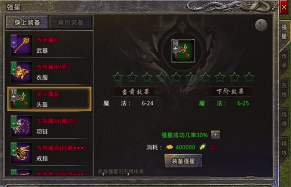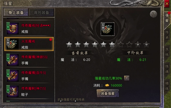 强星存在成功率,且强星等级越高成功率越低。如果强星成功,装备强星等级提升,如果强星失败,装备强星等级不变,但会减少一个强星孔位,当剩余强星孔位为0时,不能继续强星。