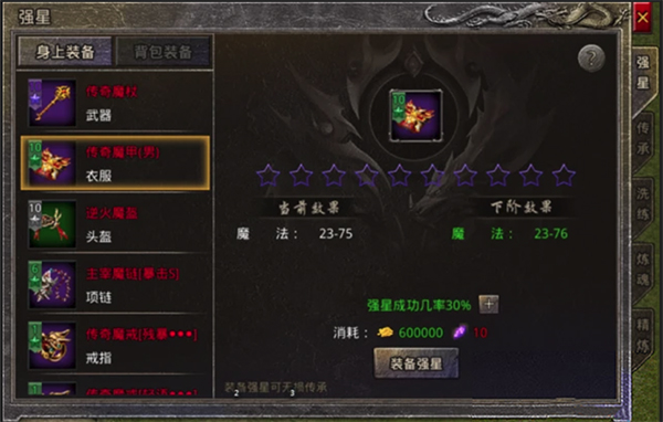 装备提升炼魂等级可以增加10次强星上限,炼魂提升后每次强星需要消耗对应材料。