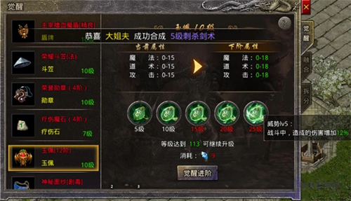 ⑤ 【玉佩】觉醒获得威势技能,战斗中造成的伤害增加。