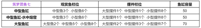 鱼缸新增了鱼缸储物箱功能,可以存放多余的观赏鱼和摆件。观赏鱼和摆件要展示需先装入鱼缸储物箱中,再从鱼缸储物箱放入展示位展示。