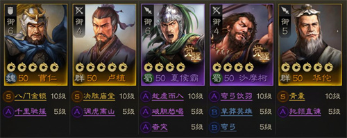 T1:皇埔嵩、吕布、颜良、马腾、公孙瓒。