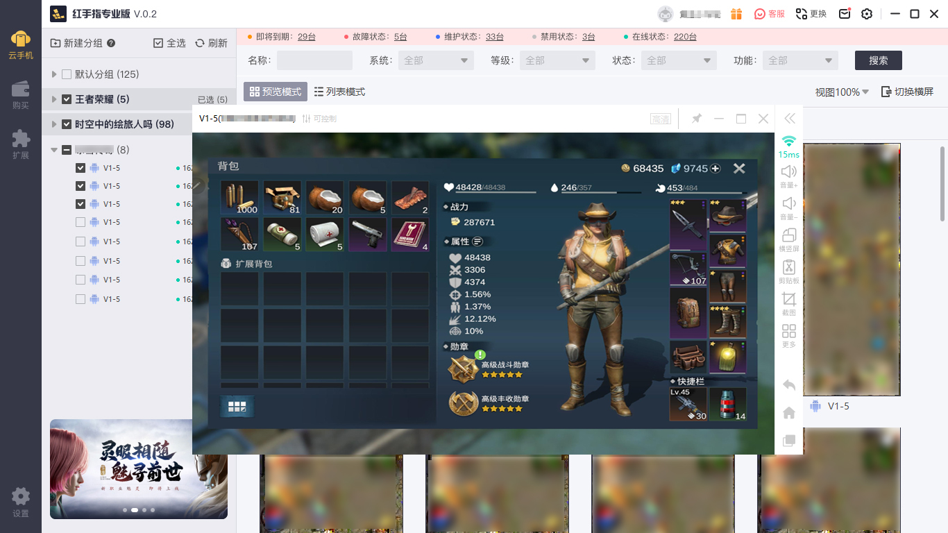 红手指云手机一台电脑,即可实现多人操作的效果,只要用红手指云手机多开,再加上同步操作功能,就可以实现一次操作和多号共享,降低了练号的容错率,提高搬砖效率降低成本。