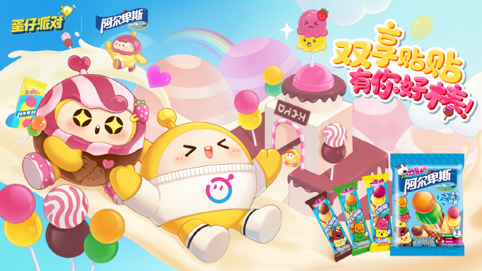 联动礼盒【阿尔卑斯双享棒礼盒】浪漫出击,内含2包双球口味一口满足蛋仔味蕾的阿尔卑斯双享棒、1包阿尔卑斯蜜香好棒、游戏礼包——联动外观【双享棒糖糖】&联动配饰【双享棒棒糖】,还有双享告白卡套与定制桌面小游戏哦