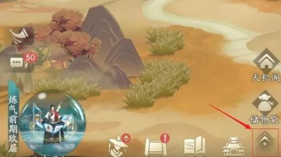 1、首先进入游戏中,然后是点击主界面右下角箭头,展开菜单选项。