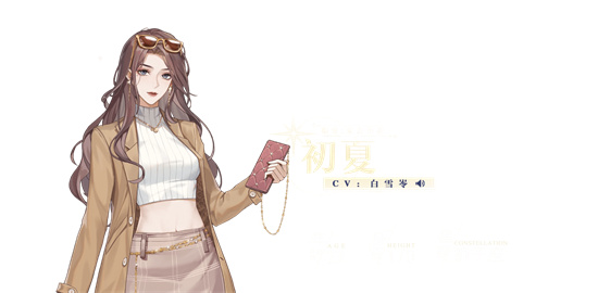 作为经济人培养明星时,需要对手中艺人充分了解,然后才能更好决策如何培养,红手指小编接下来分享璀璨星途初夏游戏资料,璀璨星途初夏培养建议: 一、璀璨星途初夏游戏资料(基础资料及设定) 1、职业:演员 2、血型:O型 3、星座:狮子座 4、年龄:23岁 6、体重:50kg 7、身高:170cm 8、定位:实力小花 9、配音CV:白雪岺 二、【初夏】经纪人备忘录 1、有的时候会太拼,得多劝劝。 2、周末考虑在家里吃炸鸡喝啤酒,好好放松一下。 3、长相过于出众,明明平时啥也没做,但不知道为啥老是会招惹上一些奇奇怪怪的人,让人头大。 【备注1】:咖啡都要无糖的;(有一次偷