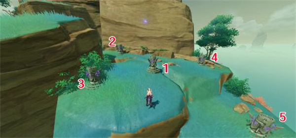 在原神布丁岛中有三座方碑,布丁岛有一处雷元素方碑需要解谜,解开之后能够得到精致的宝箱,里面有原石。下面整理分享原神布丁岛雷元素方碑位置,怎么解密: 1、首先我们需要将左侧侧盆景切换为浮光山石,右侧随意。 2、接着我们来到如图所示位置的半山腰平台,看到有5个雷元素方碑,并且墙壁上还有个雷灵在来回走动。 3、然后我们需要按照雷灵移动轨迹将方碑依次点亮即可完成雷元素方碑解谜,如图所示的数字顺序。 4、最后我们完成雷元素方碑解谜后即可获得一个精致的宝箱。 内容来源:网络整理相关阅读:手机内存不足怎么玩原神?原神初始号怎么避免封号用云手机玩原神怎么样?电脑怎么玩原神原神钓鱼攻略大全,原神钓