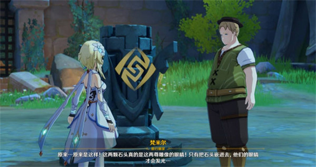在原神游戏中璃月渌华池,旅行者将会见梵米尔NPC,旅行者可以在这里接收隐藏的任务,完成隐藏任务可以获得奖励,有一些旅行者不知道如何解锁梵米尔旁边的封印,针对此小编整理分享原神梵米尔旁边的封印怎么解,画笔与颜料位置攻略: 1、找齐奇怪的石头之后,根据任务指引返回到平台上,会看到两个巨大的雕像。 2、爬到雕像的头盔处,将奇怪的石头放置进去,另一个雕像也是如此。 3、跑到平台上继续和梵米尔对话,我们能够了解到这两块石头是雕像的眼睛。 4、在元素方碑这里去使用岩元素激活,会出现挑战,在90s内击败就能够过关。 5、完成挑战后,打开后面的大门,我们能够看到有三个宝箱在里面。 内容来源:网