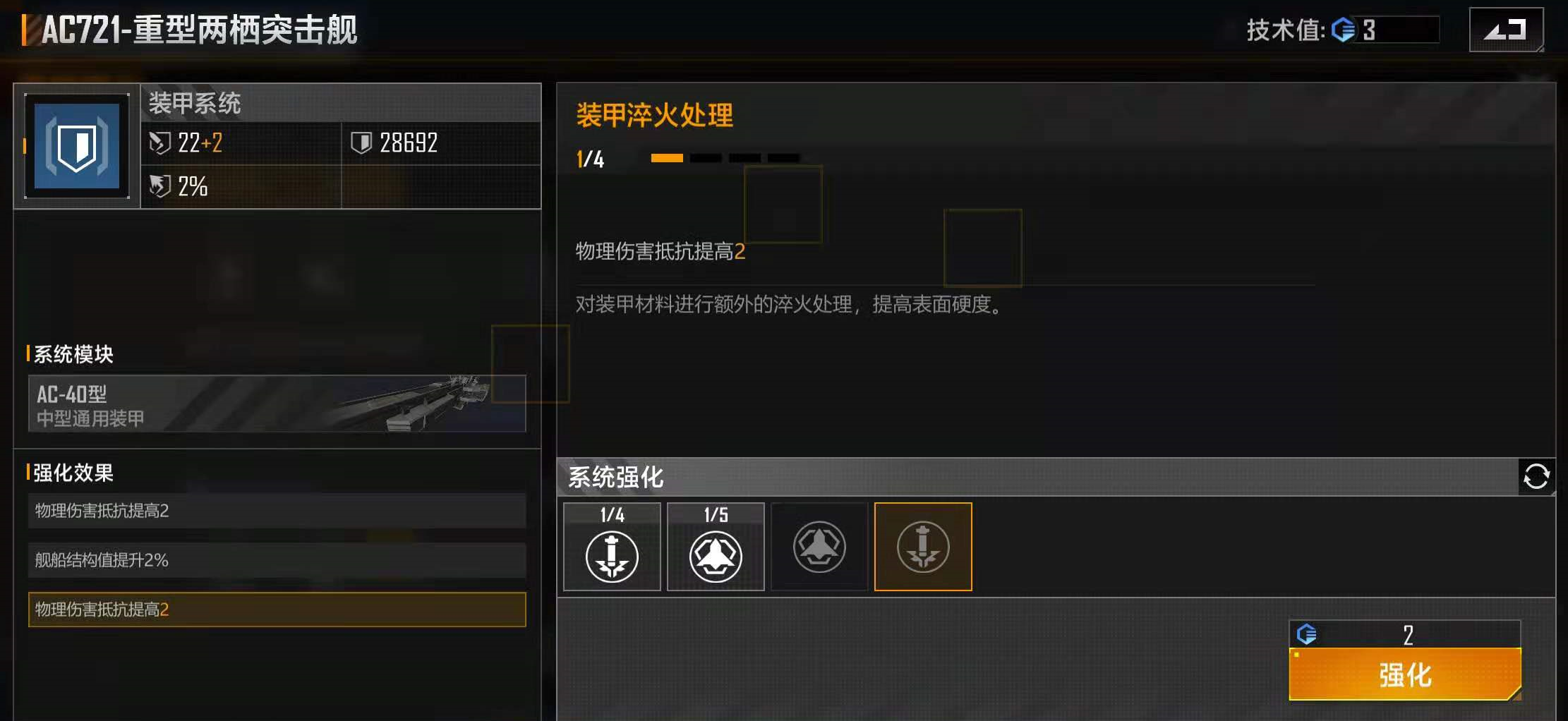 《无尽的拉格朗日》手游中战舰里的作战单位,其舰船实力是我们获胜的基础,而游戏中又为战舰提供了丰富的强化项目,这些强化究竟对战舰有哪些提升、又怎么来强化呢?小编整理分享无尽的拉格朗日战舰强化系统攻略: 在游戏中每艘舰船都有自己的武器系统、装甲系统与动力系统,个别型号的舰船还有仓储系统、炮艇维护系统等,这些系统都有可强化的地方,基于舰船的定位,在强化上也有所侧重。 无尽的拉格朗日战舰强化系统攻略一:【装甲系统】 顾名思义,强化舰船的血量、伤害抵抗与护盾,一般只有作为T的舰船需要优先强化这些,其他舰船不宜优先投入装甲系统的强化,但也有例外,譬如主力巡洋舰不缺伤害的时候,可以优先强化装甲