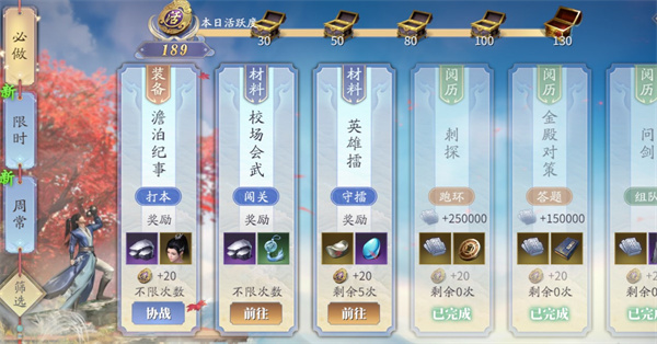 庆余年手游已经上线有一段时间了,在手游中经验是升级的关键,不少玩家在前期可能不明白游戏中经验哪里获取。对此小编整理分享庆余年手游经验获取攻略,去哪里刷,希望各位玩家能解决游戏中获取经验的问题。 一、日常主线(服务器逐渐开放) 这里就不过多介绍了,玩家进入游戏根据游戏指引完成日常主线即可获得。 二、每日活动 活动每日必做儋泊纪事、刺探、金殿对策、问剑、情报簿、海捕令等(根据等级逐渐开放新的必做任务) 注:副本日奖励不共享 例如升60级去打40副本 40副本会有奖励 再打60就没有装备奖励了。团本奖励分开,打完50的可以打65的。 三、余年志—异闻 1、异闻说明 每个异闻可获取