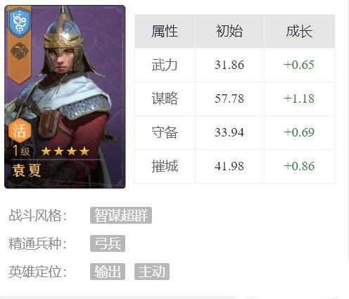 在重返帝国手游中,袁夏是属于游戏中的紫卡英雄。针对此小编下面分享重返帝国袁夏怎么玩,属性介绍: 一、重返帝国袁夏英雄属性 1、【战斗风格】:智谋超群 2、【精通兵种】:弓兵 3、【英雄定位】:输出 二、重返帝国袁夏技能介绍 1、【焚焰】:对前方扇形范围内最多2名敌军造成谋略伤害(伤害率500%,谋略加成) 2、【烈火】:进入准备状态,三秒后对目标附加燃烧状态,每秒造成谋略伤害(伤害率:22%=>24%,谋略加成)持续六秒,同时在3秒内提升我军主将造成的谋略伤害5.5%=>6%(谋略加成)。 内容整理来源:网络整理 重返帝国袁夏怎么玩,属性介绍介绍到这,相信各位