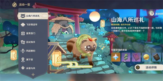 原神游戏中山海八所巡礼活动第三天的两个地点分别在蒙德城与璃月港,第三天具体流程是怎样。那么接下来小编整理原神山海八所巡礼活动第三天任务攻略流程: 一、原神山海八所巡礼活动第三天任务基础信息 1、持续时间: 2月4日-2月14日04:00 2、开启任务前提: ①冒险等阶≥30 ②完成【魔神任务】-[离岛逃离计划]【神樱大祓】-[绀田事话]【祭神奏上】-[深林狸囃子]。 开启任务需要按照顺序解锁每一小章节的内容。 3、任务奖励: 原石*30 、凛风奔狼的裂齿*3、[诗文]的引导*2 二、原神山海八所巡礼活动第三天任务攻略流程 与吉法师在之前两天内去到了龙脊雪山和死兆星号
