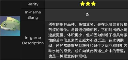 原神游戏中苦炮鲀是赤穗酒枡的获取材料之一,很多玩家还不知道苦炮鲀在哪钓,原神中苦炮鲀是一种稀有的炮鲀品种,建议使用飞蝇假饵进行钓鱼,并且属于观赏鱼,可以被饲养在灵沼云池里。接下来红手指小编整理原神苦炮鲀在哪钓,原神苦炮鲀钓鱼攻略: 一、原神苦炮鲀介绍 稀有的炮鲀品种,鱼如其名,是在水底世界传播苦涩的家伙。与普通炮鲀相较,它们射出的水炮速度更慢、体积更小,但却因为附着了极具刺激性的苦味信息素而让威力不退反进。在求偶期间,还经常能够见到雄性和雌性之间互相喷射苦味水炮的奇景,或许向彼此传递生命中的苦涩,也是一种爱意的体现吧。 二、原神苦炮鲀在哪钓 1、苦炮鲀可以在璃月钓到,需要购买合适的