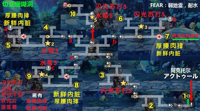 前面分享了《另一个伊甸切亚珊瑚洞副本通关线路攻略》,今天继续分享另一个副本另一个伊甸时之阁楼副本通关线路攻略,希望能给大家提供帮助。 一、另一个伊甸时之阁楼副本介绍 1、地图: 6张。 从右下开始,看起来不那么乱了。 2、宝箱: ①~⑬,其中④是梦书,⑬是天剑×3。梦书房间的门要同时踩点才能开,失败5次尤利会帮忙开门。 3、道中: 1种弱火魔耐突打,1种弱突耐魔,1种弱斩耐突。掉落5种料理素材 4、FEAR: 弱斩,耐突。掉落2种料理素材 5、最终BOSS: 2连战,魔猫(无弱耐)、魔龙(无弱耐),超简单 二、另一个伊甸时之阁楼副本通关线路 具体看下图↓ 上面