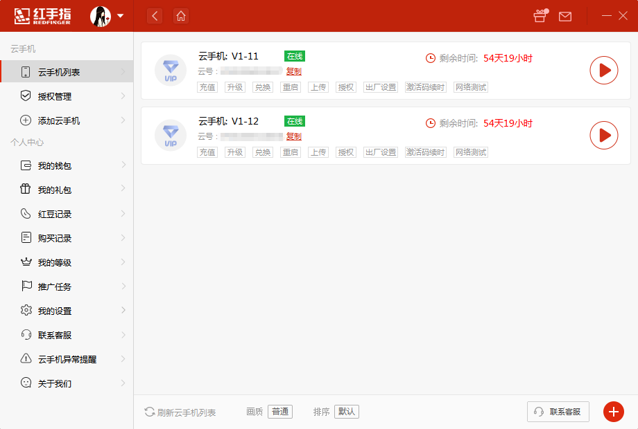 1.在本站(www.gc.com.cn)下载红手指云手机电脑版,注册登录账号后,进入主界面;