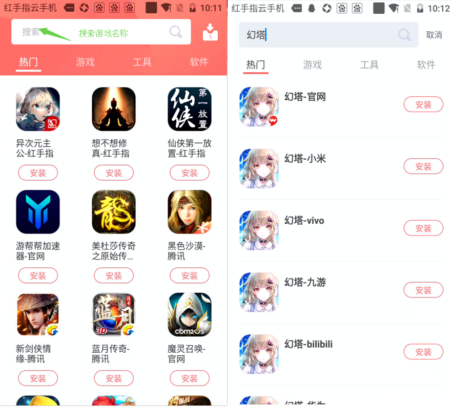 3.进入云手机,前往应有市场搜索幻塔,一键下载安装幻塔手游;云手机无门支持海量手机游戏和手游工具;