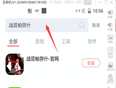 5.在云手机应用市场里搜索《战双帕弥什》,点击安装;